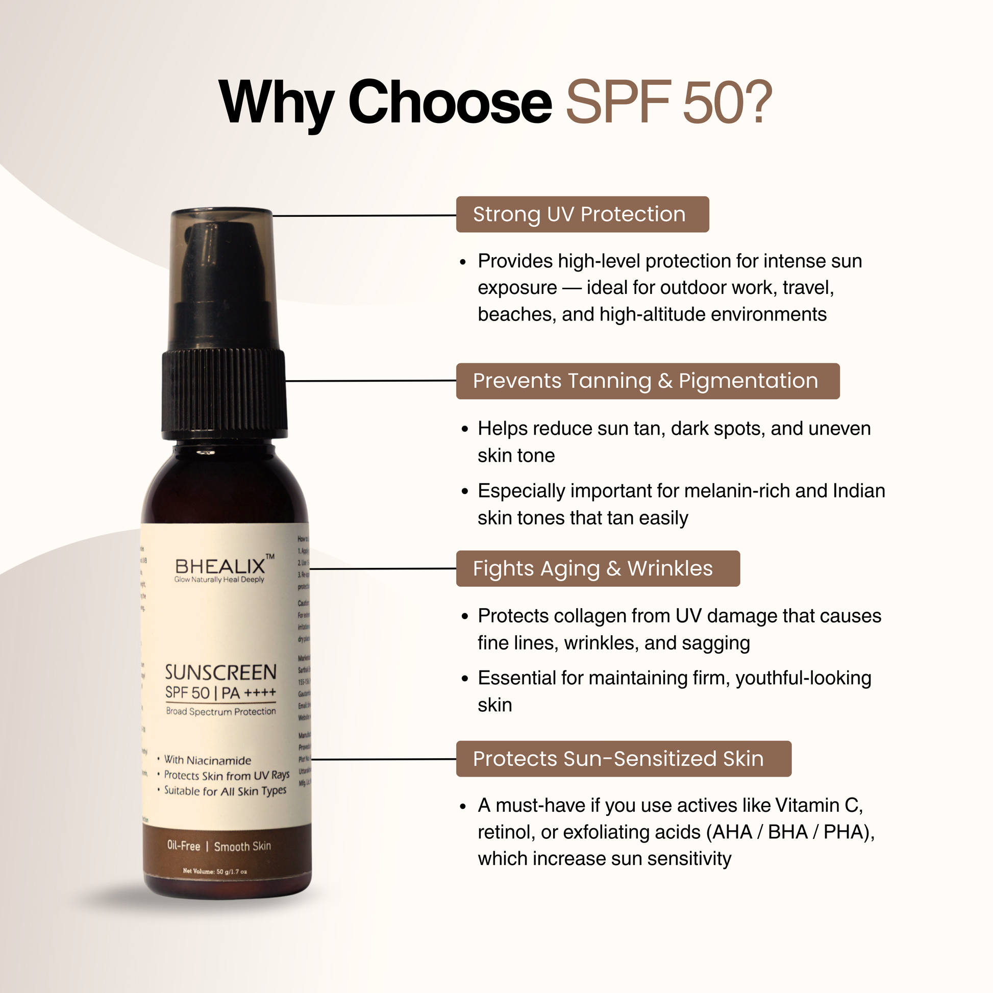 BHEALIX™ Sunscreen SPF 50 PA++++ is a lightweight daily sun protection formula designed to shield skin from harmful UVA and UVB rays while maintaining hydration and skin balance